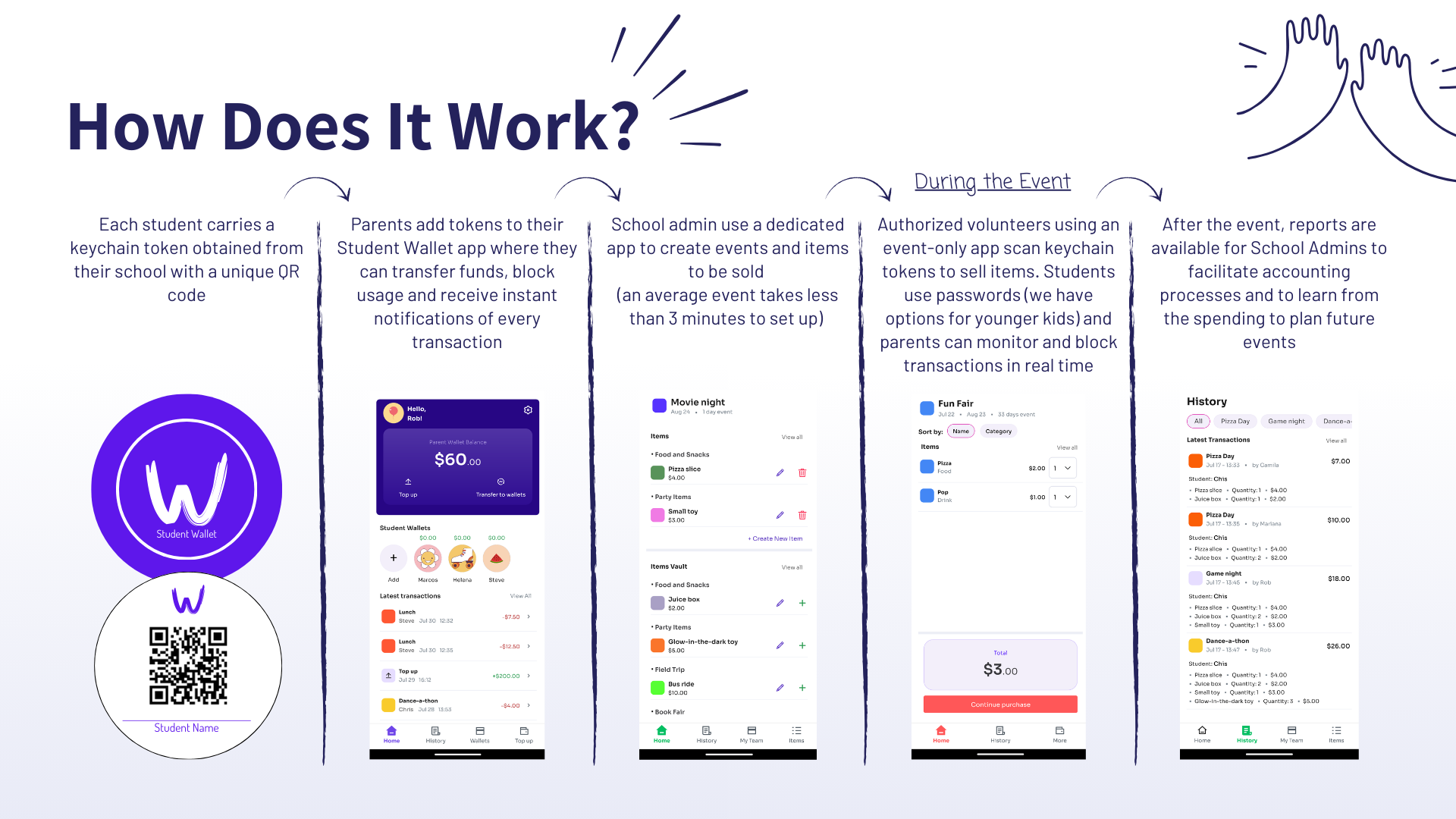 Fully cashless: Eliminate unsafe workarounds with a simple keychain token, minimizing risks and enabling live cashless transactions at school events.